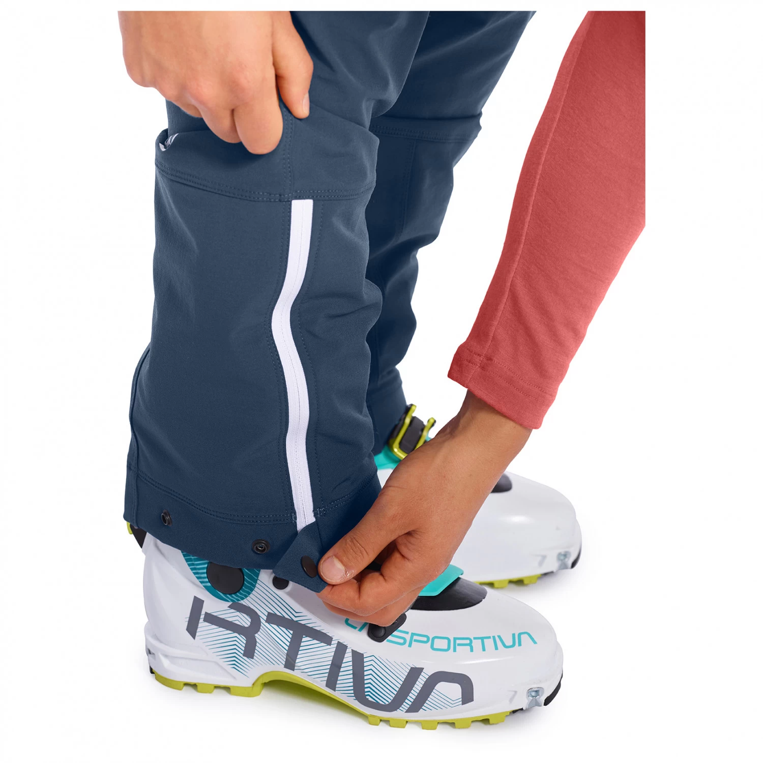 What else doe these mountaineering trousers have to offer? In addition to the map pocket, there are also two front pockets and one back pocket so that you have enough room to store your mobile phone and other essentials within easy reach. The edge protection on the inside leg ends ensures a long product life, while the leg ends are also adjustable for a perfect fit. The Women’s Cevedale Pants have integrated gaiters to prevent snow from getting inside the trousers from below. So these trousers should be your first choice when you head to the mountains in winter!